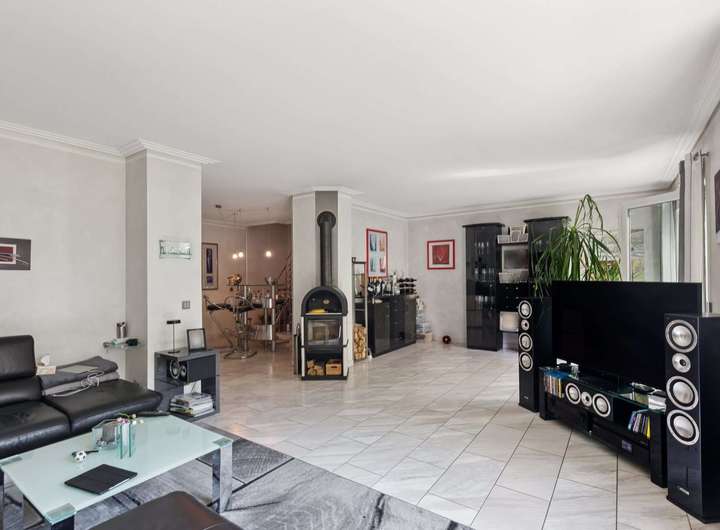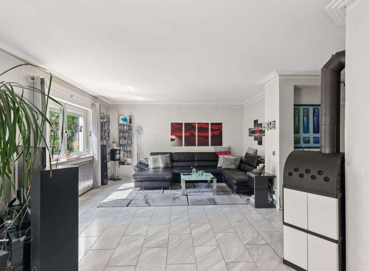 •	Im geräumigen Wohnzimmer erwartet Sie ein gemütlicher Kamin, der an kalten Tagen für wohlige Wärme sorgt und dem Raum eine besondere Atmosphäre verleiht.