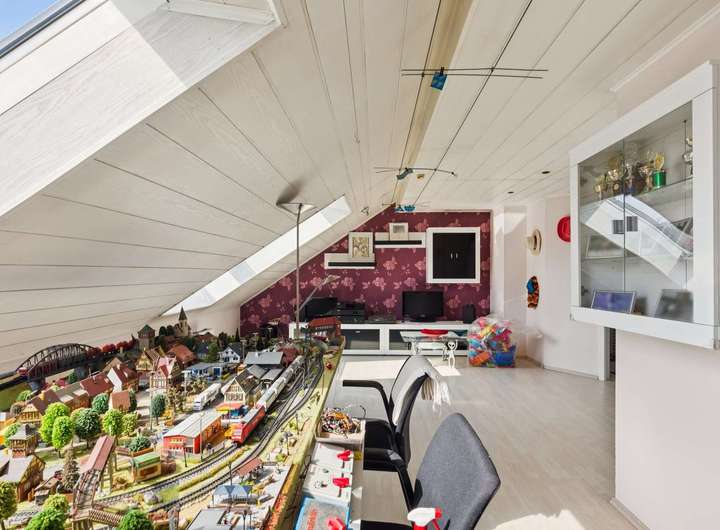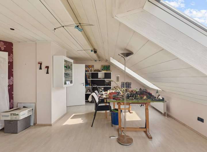Das ausgebaute Dachgeschoss umfasst ca. 56 m² Nutzfläche, die nicht zur Wohnfläche zählt, aber wohnlich gestaltet ist und vielfältige Nutzungsmöglichkeiten eröffnet – ob als privater Rückzugsort, Jugendbereich, Gästeetage oder Hobbyraum.