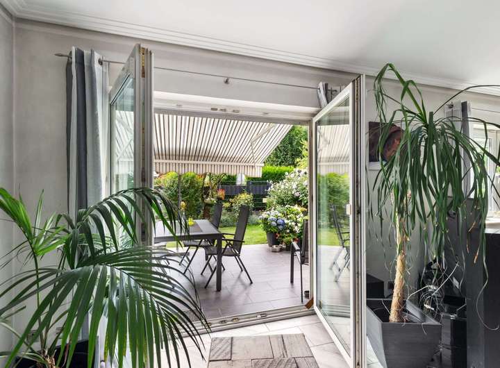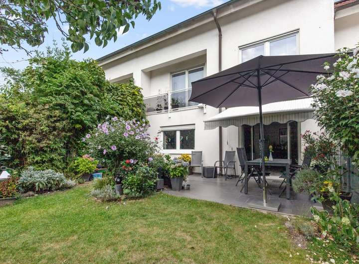 •	Der Garten ist ein kleines Paradies: eine Terrasse mit Markise für sonnige Nachmittage, ein Freisitz zum Grillen und Entspannen – hier entstehen Erinnerungen.