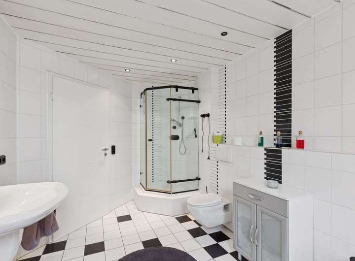 •	Der Waschkeller ist funktional und praktisch – mit integrierter Dusche, perfekt nach dem Saunieren, für den Alltag oder nach der Gartenarbeit.