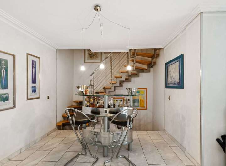 •	Das Hauptschlafzimmer ist ein echtes Highlight: Zugang zum Balkon, durch einen Rundbogen gelangen Sie in ein begehbares Ankleidezimmer mit maßgefertigten Einbauschränken – hier beginnt jeder Tag mit Stil.