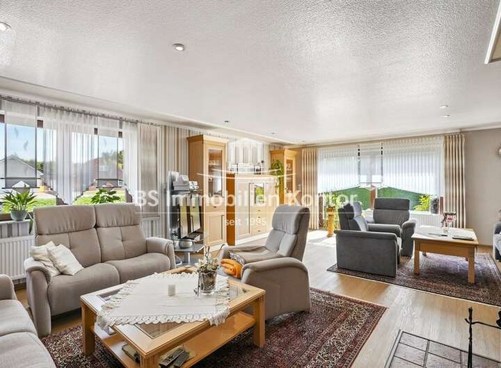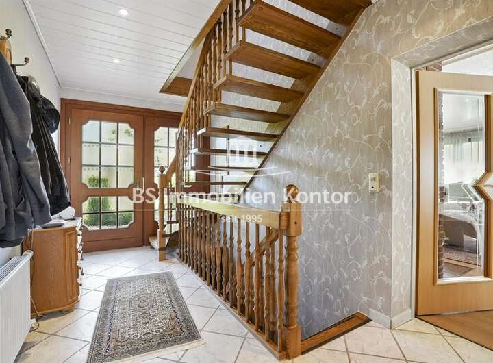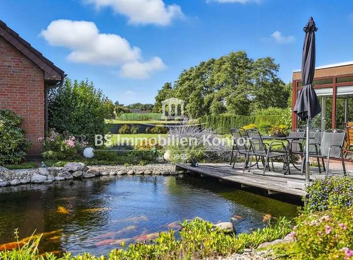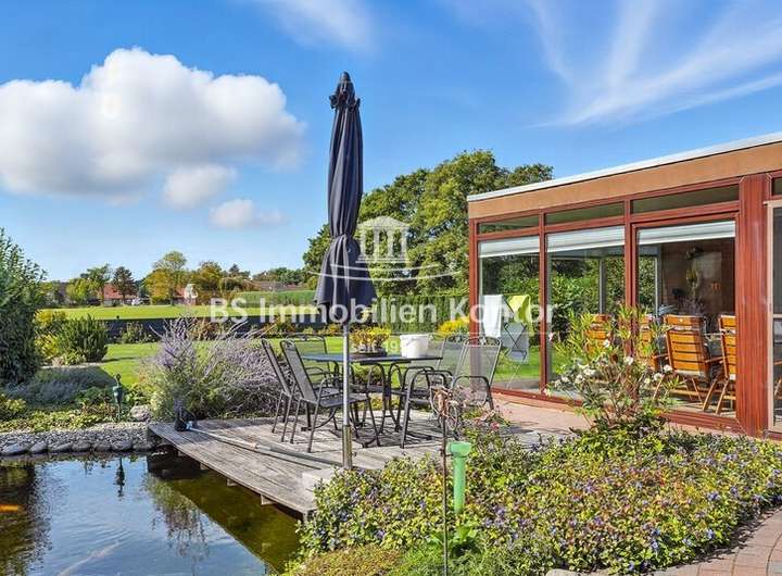 Das top gepflegte Einfamilienhaus wurde 1973/1983 in konventioneller Massivbauweise mit einem Satteldach erstellt und überzeugt durch seine ruhige Lage, eine durchdachte Raumaufteilung sowie eine schöne Gartenanlage. Auf einer Wohnfläche von ca. 220 qm bietet das Haus viel Platz für die ganze Familie. Zwei lichtdurchflutete Wintergärten erweitern das Platzangebot und schaffen eine Wohlfühlatmosphäre zu jeder Jahreszeit. Das ca. 3.475 qm große Grundstück bietet eine außergewöhnliche Weitläufigkeit und Privatsphäre. Ob als Spielparadies für Kinder oder zur gärtnerischen Gestaltung, hier bleiben keine Wünsche offen. Mehrere Sonnenterrassen, ein Koi-Teich und ein überdachter Grillplatz runden das Angebot ab. Beheizt wird die Immobilie durch eine Gas Z.- Heizung (BJ:2008). Die Kunststofffenster in Holzoptik sind Isolierverglast und mit Jalousien ausgestattet. Überzeugen Sie sich selbst bei einer persönlichen Besichtigung – wir freuen uns darauf, Ihnen diese Immobilie präsentieren zu dürfen.