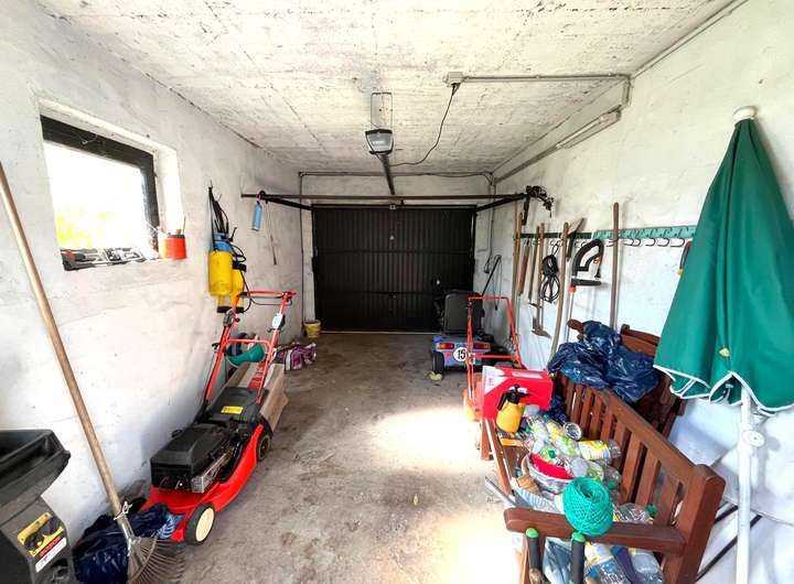 Eine massive Garage mit elektrischem Schwingtor sowie zwei Außenstellplätze vor der Garage runden das Platzangebot ab.