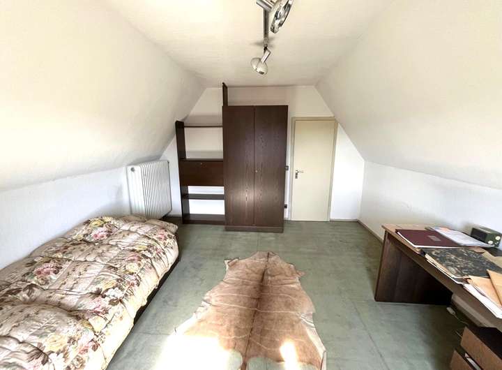 Im Dachgeschoss befinden sich zwei helle Kinderzimmer, ein großes Schlafzimmer mit direktem Zugang zum modernisierten Badezimmer (2020) sowie ein separates WC. Vom Schlafzimmer aus gelangen Sie auf den Balkon, der zusätzlichen Außenkomfort bietet. Der ausgebaute Spitzboden verfügt über zwei weitere Räume, die nicht zur offiziellen Wohnfläche zählen, sich jedoch ideal als Hobby-, Arbeits- oder Gästezimmer nutzen lassen.