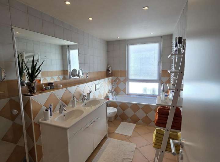 Bei dieser ansprechenden Immobilie handelt es sich um ein Reihenhaus als Teil einer WEG, das durch eine gehobene Innenausstattung besticht. Zwei Badezimmer, ein separates Gäste-WC und fünf Zimmer machen das Reihenhaus zu einem Wohlfühlort. Das monatliche Hausgeld beträgt gegenwärtig 273,00 €. Zum Reihenhaus gehören eine Einbauküche, Einbauschränke und eine Garage für Ihr Auto. Zum Elternschlafzimmer schließt sich ein begehbarer Kleiderschrank an.