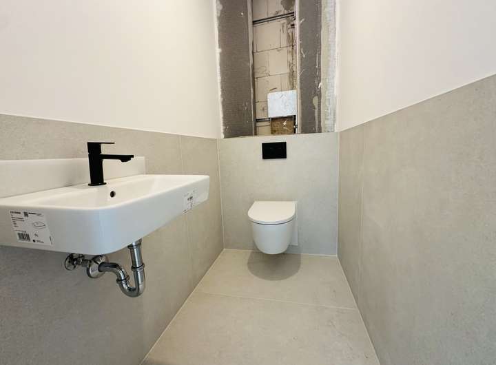 - Moderne Raumgestaltung wie glatt verputze Wände, großformatige Fliesen, uvm.