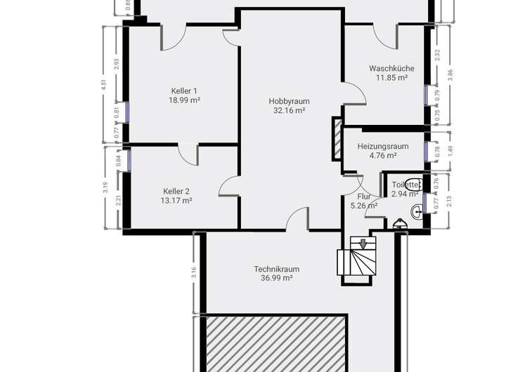 Zudem ist das Haus voll unterkellert. Im Untergeschoss befinden sich zwei Abstellräume, ein Gäste-WC, eine klassische Kellerbar und eine Waschküche.