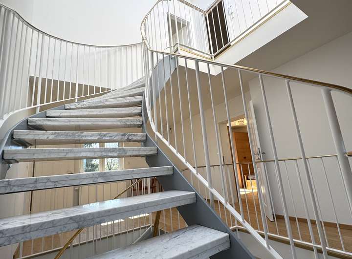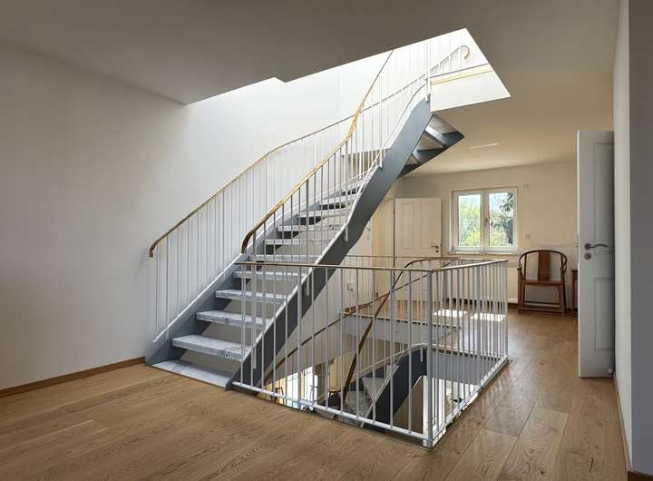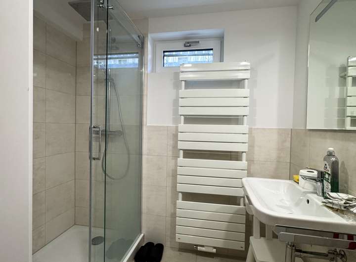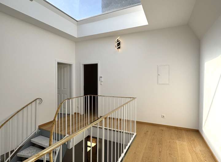 Im Zuge der Sanierung 2024 wurden moderne Heizkörper im 1. OG und DG sowie eine Kombination aus Heizkörpern und Fußbodenheizung im EG und UG neu installiert.