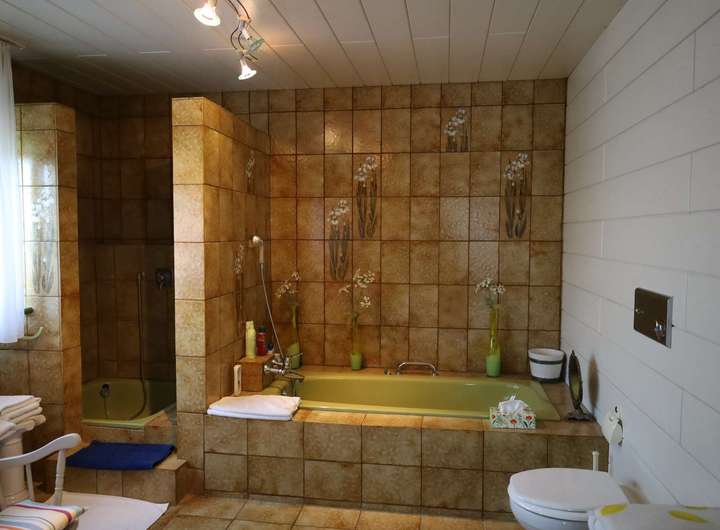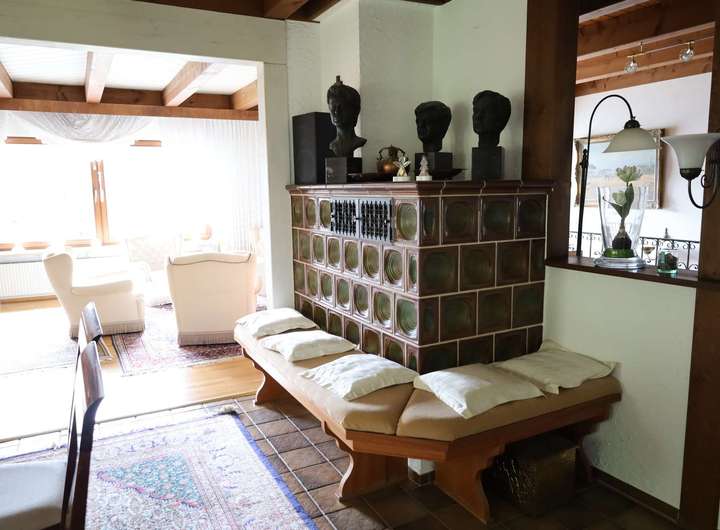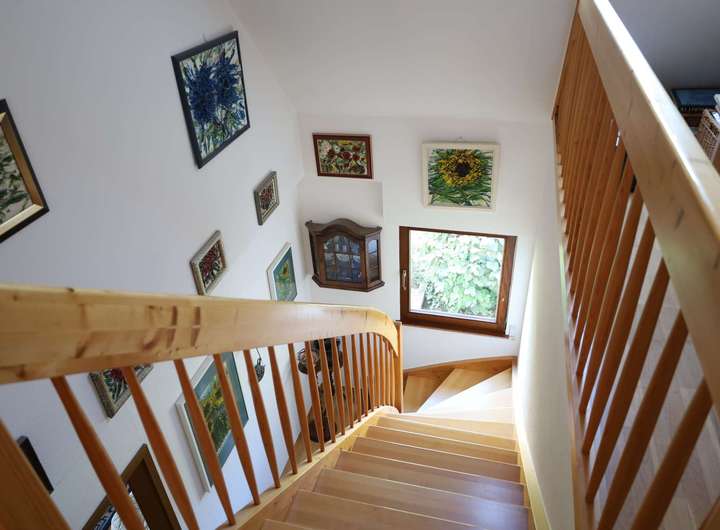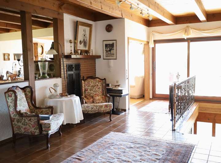 Beim Betreten des Hauses empfängt Sie eine einladende Diele im Erdgeschoss. Über das großzügige Treppenhaus erreicht man das Obergeschoss mit WOW-Effekt: lichtdurchflutete Lebensräume mit großem Essplatz, großzügiges Wohnen mit schöner Aussicht und gemütlichem Kachelofen. Hier trifft sich die Familie und Freunde, um miteinander gemeinsame Stunden zu verbringen. Die angrenzende Küche ist großzügig und bietet direkten Zugang zur Terrasse und in den Garten. Ergänzt wird diese Ebene durch ein Schlafzimmer und ein geräumiges Tageslichtbad mit Badewanne und Dusche.