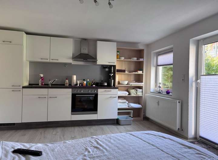 Modernisiert im Herbst 2021, große Fenster, Flur, Wohnzimmer - Küche, Schlafzimmer, Vollbad mit Dusche und Wanne