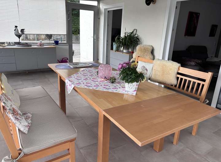 Modernisiert im Herbst 2024 mit moderner Voll-Küche-Esszimmer, Wohnzimmer, Schlafzimmer, Duschbad mit WC, großer Wintergarten mit Möglichkeit der Beschattung