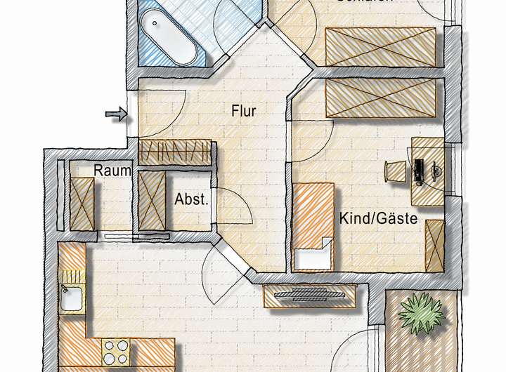- Angenehmes Raumklima durch dezentrale Wohnraumlüftung mit Wärmerückgewinnung