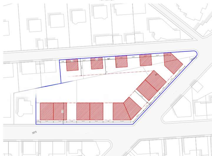 Das Grundstück liegt in einem allgemeinem Wohngebiet, denkbar wäre z.B.5 Einfamilienhäuser und 4 Doppelhäuser auf dem Grundstück zu errichten.
