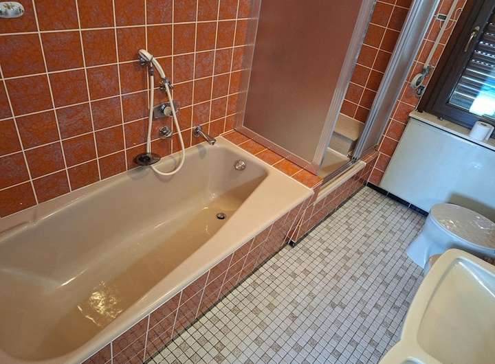 Altbau EG: Flur, Bad mit Wanne, Küche und Esszimmer