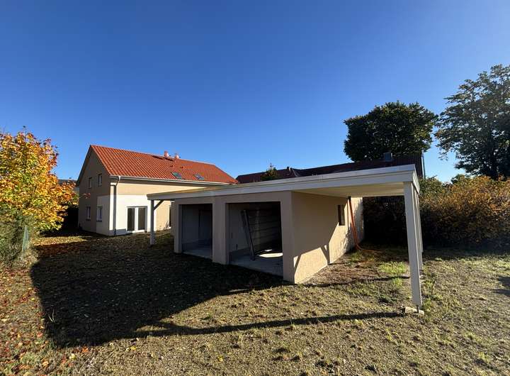 Energieeffiziente Doppelhaushälfte mit Fussbodenheizung, Garage, Carport, Schuppen uvm.