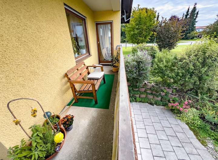 Modernes, gut ausgestattetes Wohnen mit komplett eingerichteter Küche im Erdgeschoss, großzügiger Balkon mit attraktivem Ausblick.