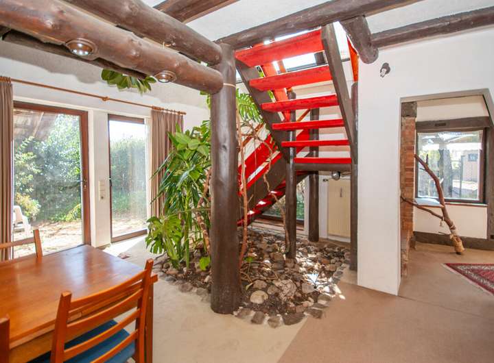 Diese besondere Immobilie in Liebenburg-Klein Mahner überzeugt durch ihren unverwechselbaren Charakter und vielseitiges Potenzial. Das Haupthaus bietet gemütliche Räume mit eher niedriger Deckenhöhe, einen geschlossenen Kaminofen sowie eine einladende Atmosphäre. Ergänzt wird das Angebot durch einen großen Dachboden, eine Terrasse und eine Garage. Der Anbau mit zusätzlichem Wohnbereich mit einem offenen Kamin und zwei Zimmern im Obergeschoss bietet weitere Gestaltungsmöglichkeiten und macht das Ensemble zu einem einzigartigen Zuhause für individuelle Ideen.