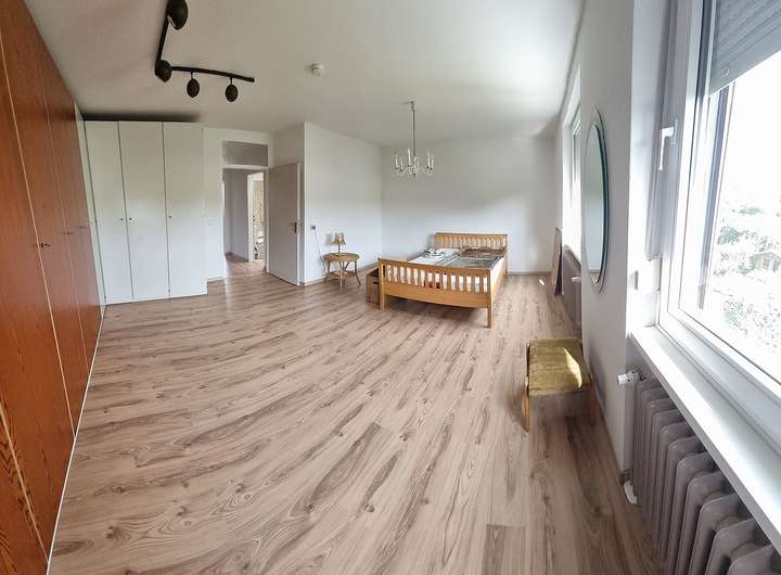 Zwei Zimmer, darunter ein Schlafzimmer mit praktischen Einbauschränken