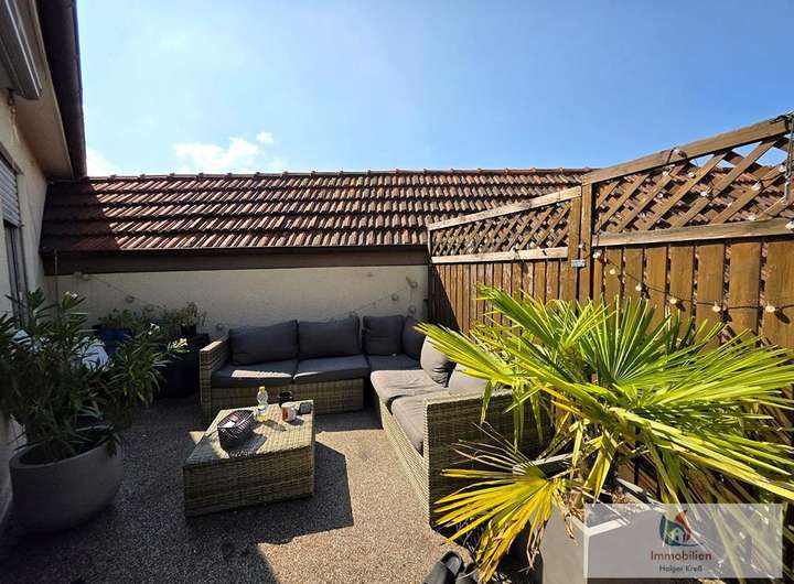 Obergeschoss: Küche mit Zugang zur gemütlichen Loggia, Wohn- und Esszimmer, Schlafzimmer