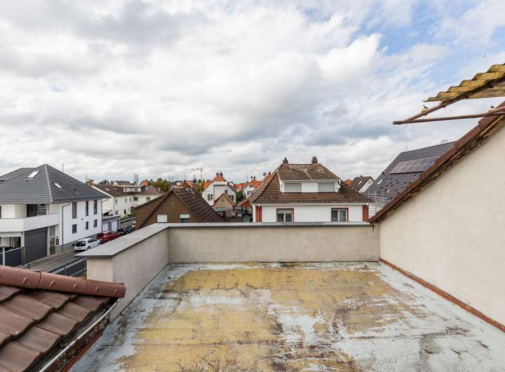 Ein besonderes Highlight ist die großzügige Dachterrasse, die hoch über den Dächern von Pfungstadt einen einzigartigen Rückzugsort im Freien bietet. Ob sonnige Stunden, entspannte Abende, eine private Rooftop-Bar oder eine elegante Outdoorküche – hier eröffnen sich vielfältige Gestaltungsmöglichkeiten.