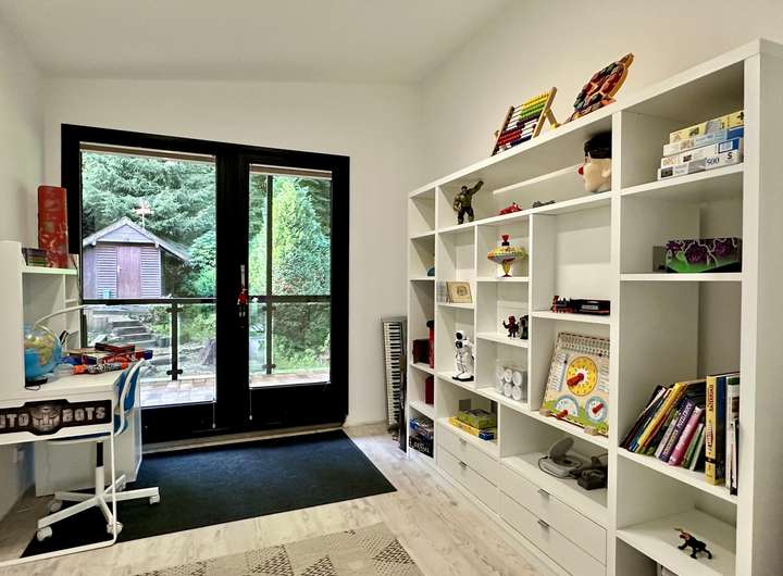 Im Jahr 2024 wurde das Obergeschoss vollständig modernisiert und erstrahlt in neuem Glanz. Hier befinden sich ein gemütliches Schlafzimmer mit Panoramafenster, ein Kinderzimmer, ein Ankleidezimmer sowie ein luxuriöses Vollbad mit japanischer Toilette – ein Highlight für alle, die Komfort und Design schätzen.