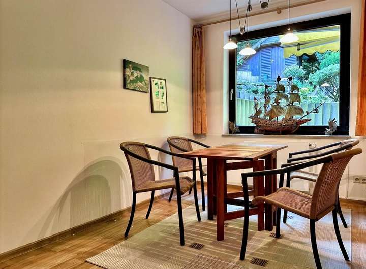 Das Erdgeschoss bietet mit seinem großzügigen Wohnzimmer, dem angrenzenden Esszimmer, einer Küche, einem Hauswirtschaftsraum sowie einer Gästetoilette viel Platz für das tägliche Leben. Ergänzt wird die Etage durch einen beheizbaren Abstellraum, der aktuell als Kellerersatz dient, aber vielfältige Möglichkeiten für eine wohnliche Nutzung eröffnet.