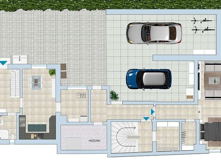 Die Aufteilung und Zugänge schaffen viele Möglichkeiten von Mehrgenerationenwohnen, Teilvermietung oder das hauseigene Büro.