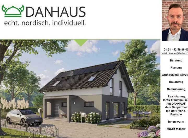 Gemeinsam mit Ihnen entwickeln wir von der ersten Idee bis zum fertigen Projekt-Konzept das perfekt zu Ihnen passende Traumhaus, um Ihren individuellen Haustraum zu verwirklichen. Sie erzählen uns was Ihnen wichtig ist, wir beraten Sie, geben wichtige Tipps und Tricks und entwickeln dann für Sie das perfekt passende Haus-Konzept. So wird Ihr neues Danhaus auch garantiert zu Ihrem neuen Traumhaus. Es ist uns besonders wichtig, und dies zählen wir auch zu einer unserer ganz großen Stärken, dass Sie von uns bereits im Standard ein Leistungspaket erhalten, das keinerlei Lücken aufweist. Und das von Anfang an. Wir möchten gemeinsam mit Ihnen transparent und realistisch planen und Ihnen unliebsame Überraschungen ersparen. Unsere Beratung beinhaltet deshalb alle relevanten Hausbau-Details und alle wichtigen Leistungen rund um Ihr neues Danhaus.