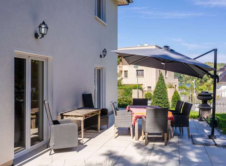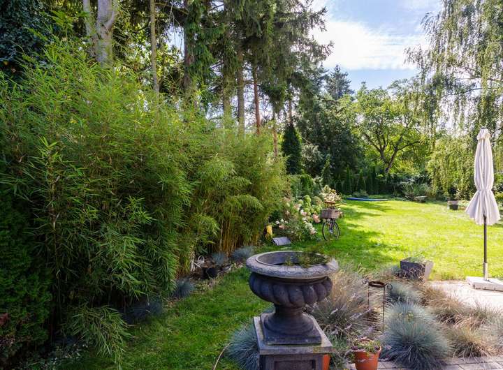 Das sonnige Süd-West-Grundstück lädt dazu ein, die langen Sommerabende im Freien zu genießen. Der wunderschön gestaltete Garten und der gepflegte Vorgarten bieten Ruhe, Privatsphäre und ein harmonisches Gesamtbild. Die 30m² große Sonnenterrasse lädt zu gemütlichen Abenden mit Familie und Freunden ein.