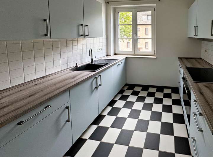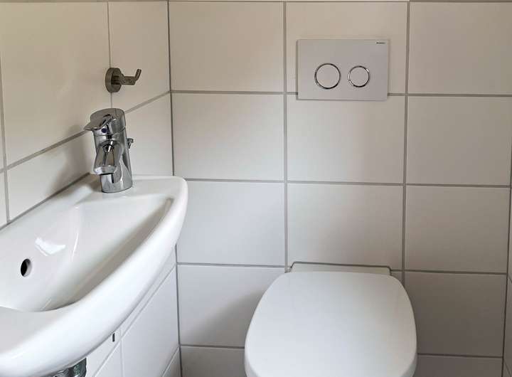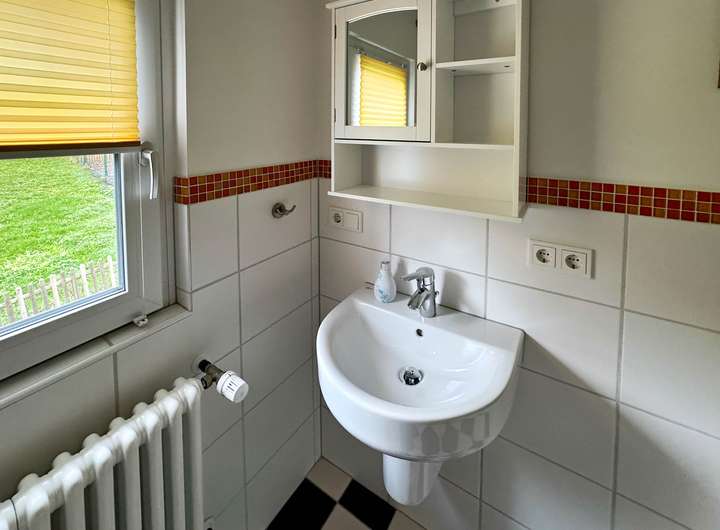 Fliesen in der Küche, den Sanitärräumen, im Anbau oben, wie der Verkehrsfläche im EG.