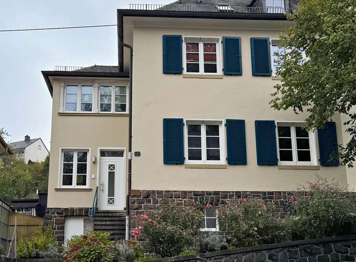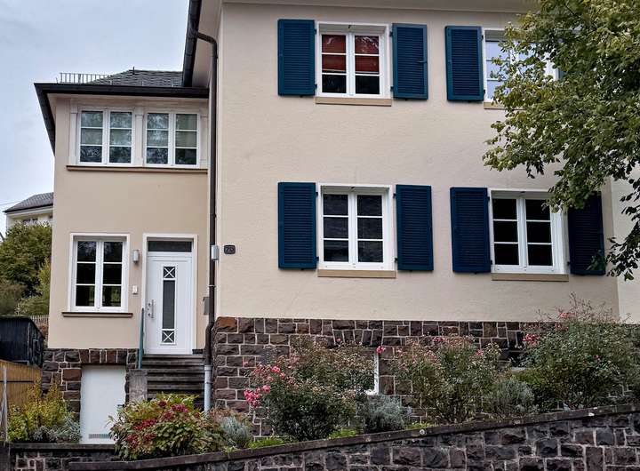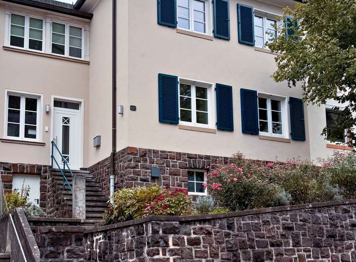 Die Doppelhaushälfte mit Garten liegt relativ zentral im Stadtteil Oberstein (Wohngebiet Finsterheck) mit Blick auf Felsenkirche und Schloss.