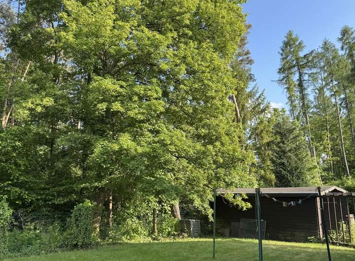 Das Grundstück grenzt an 2 Seiten direkt an den Wald, es gibt nur einen direkten Nachbarn.