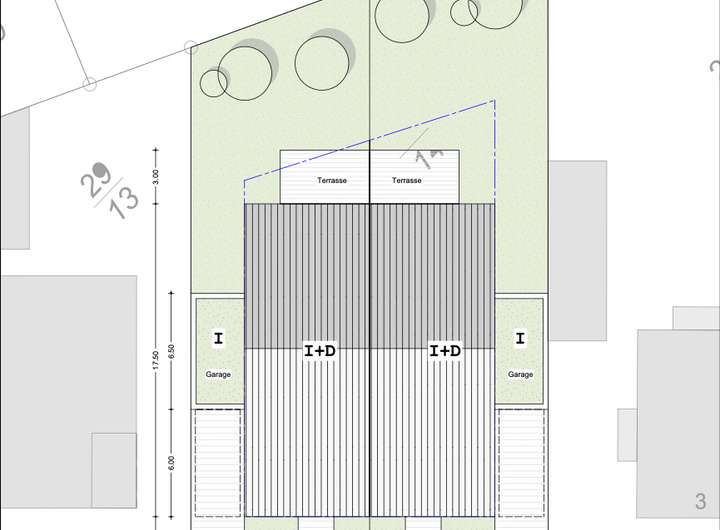 Mit einer Grundstücksfläche von ca. 693 m² eignet sich das Grundstück ideal für die Bebauung mit zwei großzügigen Doppelhaushälften. Die geplante Wohnfläche pro Haushälfte kann bis zu ca. 120-160 m² betragen.
