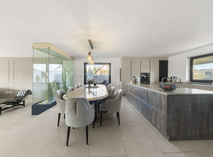 Bei der Planung, beim Bau sowie bei späteren Renovierungsarbeiten wurde großen Wert auf Qualität, Stil und Langlebigkeit gelegt. Die aktuellen Eigentümer haben das Erdgeschoss vollständig entkernt und mit hochwertigen Materialien sowie durchdachtem Design neu gestaltet. Im Zuge dieser Modernisierung wurde auch der Grundriss zeitgemäß angepasst.