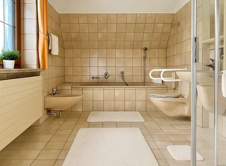 Mögliche Gebäudeerweiterung auf dem Grundstück Fußbodenheizung in Wohnzimmer, Esszimmer, Büro sowie in den Bädern Sprossenfenster aus tropischem Edelholz mit innenliegenden Bleisprossen Außenrollläden an allen Fenstern, teils elektrisch Breitbandanschluss, Satellitenschüssel, Antenne Heizkörper in verschiedenen Kellerräumen Kupfer Dachrinnen Geräumige Doppelgarage mit Abstellfläche auf dem Dachboden Elektrisches Garagentor Wallbox in der Garage Geräteschuppen und Holzunterstand im Garten Ganzjährig mögliche Gartenbewässerung mit Grundwasser (vier Zapfstellen im Garten)