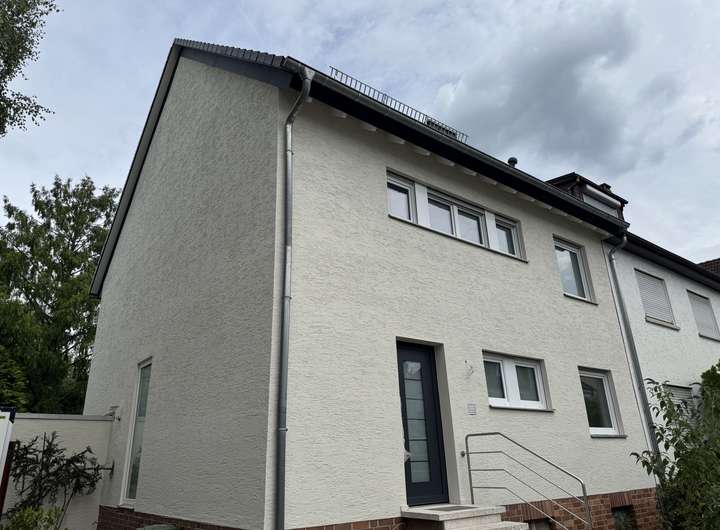 Bei der ansprechenden, frisch sanierten Doppelhaushälfte handelt es sich um eine Immobilie, die sich durch eine gehobene Innenausstattung auszeichnet und ab dem 24.9.2025 bezogen werden kann. Zwei Badezimmer und ein separates Gäste-WC, ein WC im Dachgeschoss zählen neben vier einladenden Zimmern zu dem Objekt. Viel Platz zum Gärtnern, Spielen oder Sonnenbaden. Auf den 200 Quadratmetern des dazugehörenden Grundstücks können Sie entspannen. Fahrräder, Kisten oder Ähnliches lassen sich im ebenfalls vorhandenen Kellerraum unterbringen. Eine Garage sowie ein Stellplatz vor der Garage runden das Angebot ab. Der monatliche Mietpreis liegt bei 3.150 Euro.