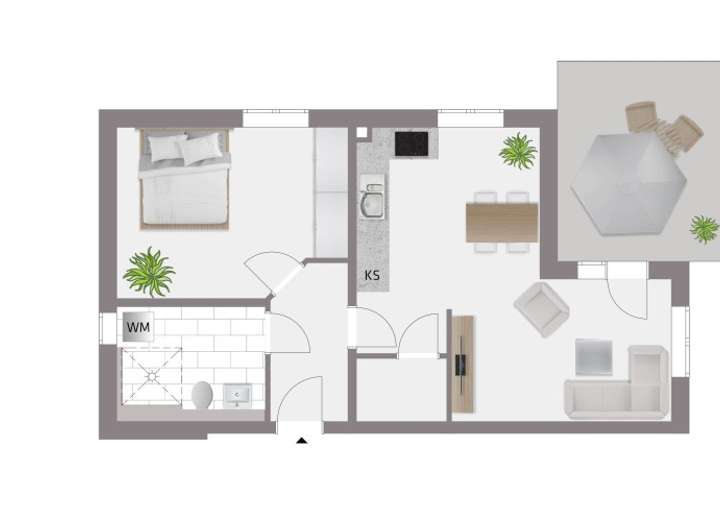 Ihr neues Zuhause befindet sich im Erdgeschoss und erstreckt sich auf 2 Zimmer mit etwa 62 m² Wohnfläche.
