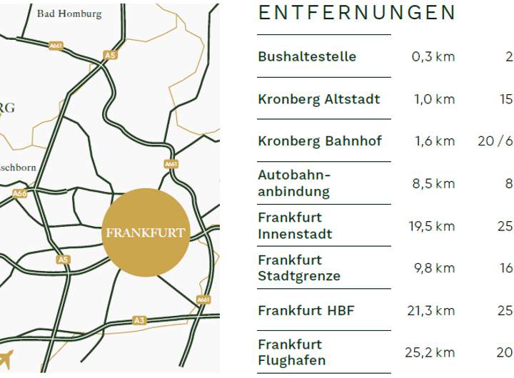 In südlicher Richtung erreicht man die A5 und A66. Aufgrund der hervorragenden Anbindung an das Autobahn- und Bundesstraßennetz ist der Frankfurter Flughafen als bedeutendes internationales Luftdrehkreuz sehr gut zu erreichen. Über den eigenen (S-) Bahnhof besteht eine schnelle und direkte Schienenanbindung an den Fernverkehrsknoten Frankfurt am Main. Das sehr gut ausgebaute ÖPNV-Netz verfügt über drei Stadtbuslinien und garantiert zudem ein ausgezeichnetes innerstädtisches Nahverkehrsangebot.