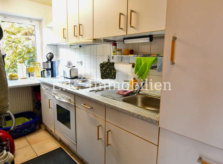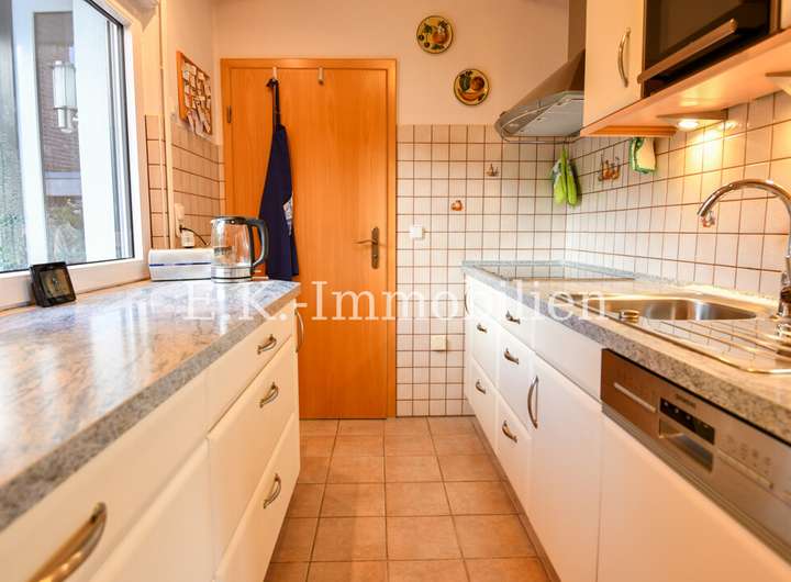 Küche mit Einbauküche, kurze Wege, da sich zwei Küchenzeilen gegenüber voneinander befinden,