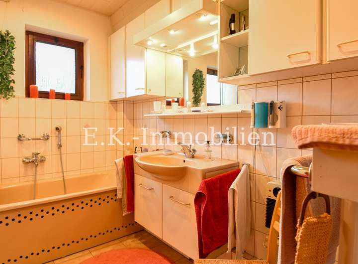 Badezimmer mit Wanne, Dusche und Waschbecken