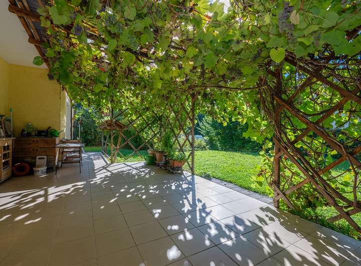 Gepflegter Gartenbereich mit viel Platz für Spielgeräte