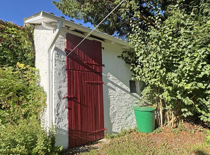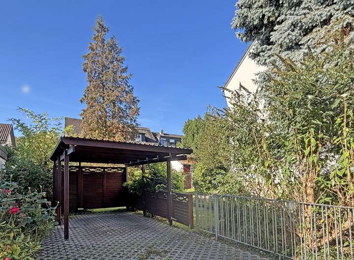Das gesamte Gelände ist eingefriedet, so dass man sich mit Kindern, Haustieren etc. keine Gedanken machen braucht. Rasenflächen und Büsche, Blumen und Bäume schaffen eine grüne Oase zum Gärtnern, Spielen, Entspannen und Relaxen. Ein kleiner, praktischer Schuppen bietet Platz für Fahrräder und Gartengerätschaften und ein Carport mit Stellplatz davor ist vorhanden.