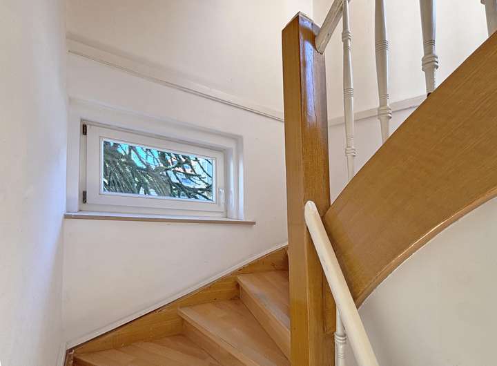 Sowohl das Erdgeschoss als auch das Obergeschoss haben eine sehr heimelige, Atmosphäre, die etwas an alte Zeiten erinnert. Wer daran Freude hat, kann mit wenig Details tolle Akzente setzen und schätzt die ursprünglichen Türen mit Eisblumenglas und die leicht erhöhten Decken.