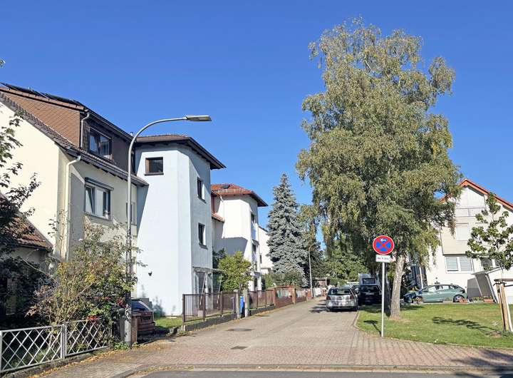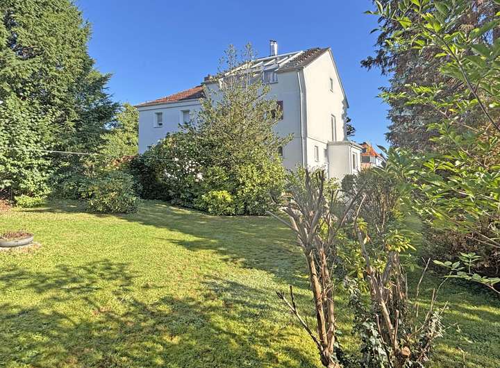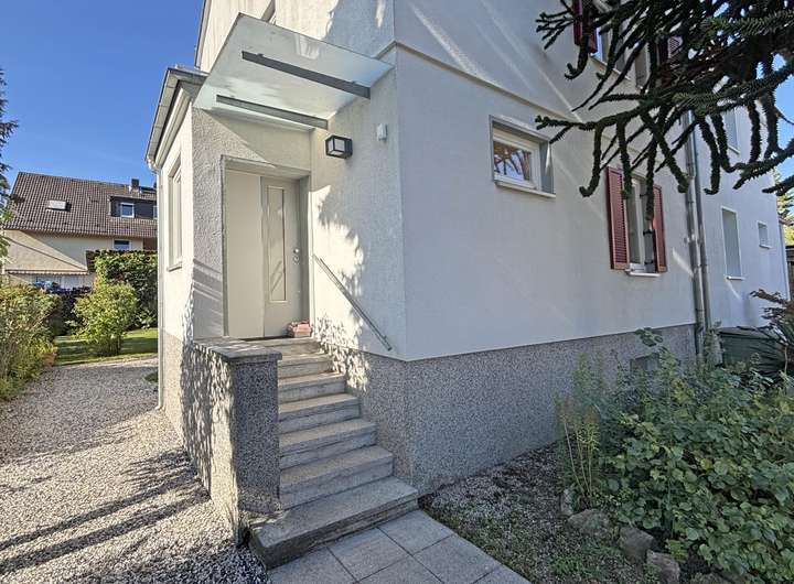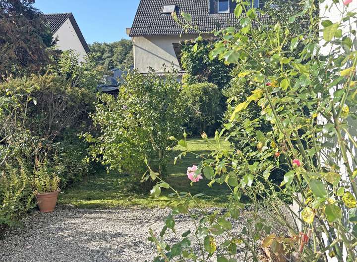 Am Ende einer kleinen, ruhig gelegenen Sackgasse liegt die charmante Immobilie etwas zurück gesetzt in Süd-Westausrichtung umgeben von viel Grün, hohen Bäumen in netter Nachbarschaft.
