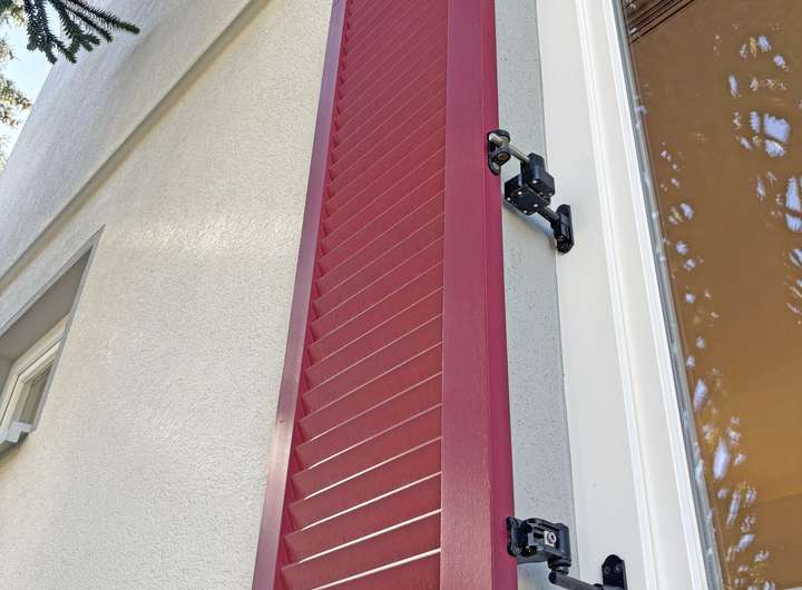 doppelt verglaste Holzfenster mit Holzklappläden, die von innen zu öffnen und schließen sind