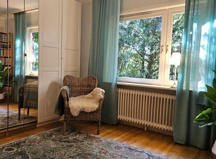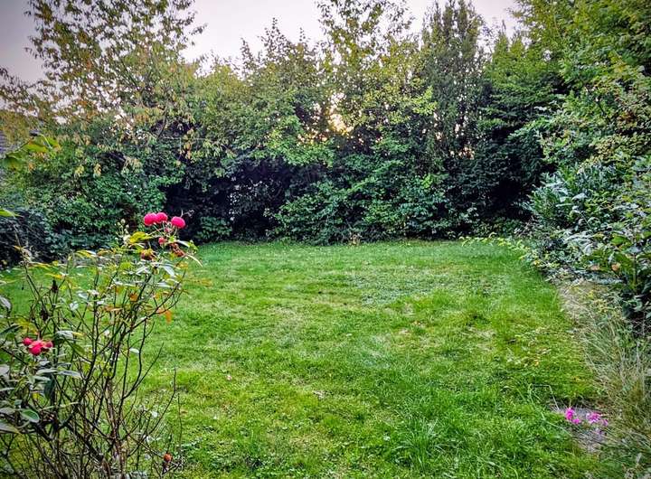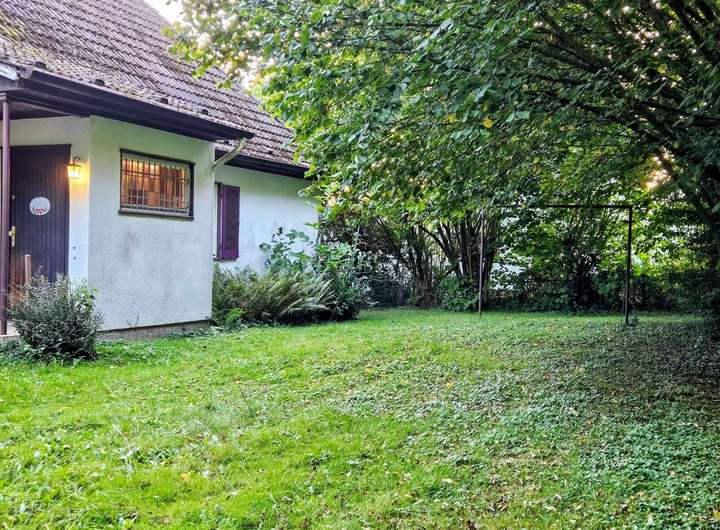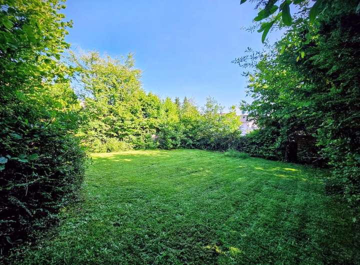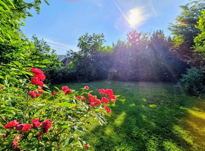 Zu dem Haus gehört ein großes Grundstück mit altem Baumbestand, Obstbäumen, Haselnusssträucher und jede Menge Rasenfläche für die Kinder zum spielen. Also eine absolute Wohlfühloase.