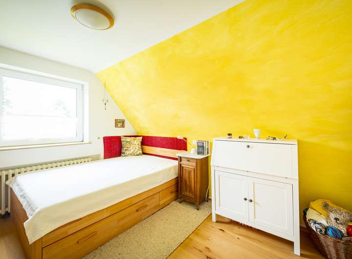 Ebenfalls auf dieser Etage befindet sich ein weiteres Zimmer mit Gartenblick, welches als Gäste- oder Kinderzimmer genutzt werden kann.