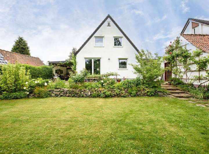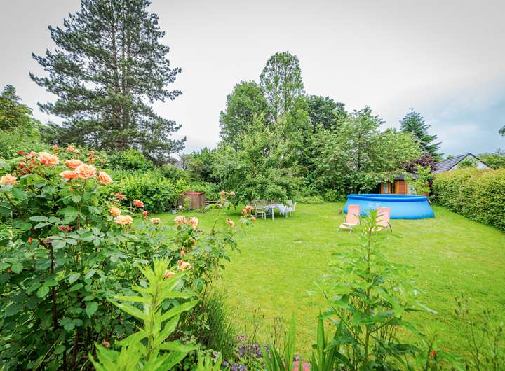 Der große Garten ist durch hohe Hecken geschützt und bietet Raum für glückliche Stunden und vielseitige Hobbies.