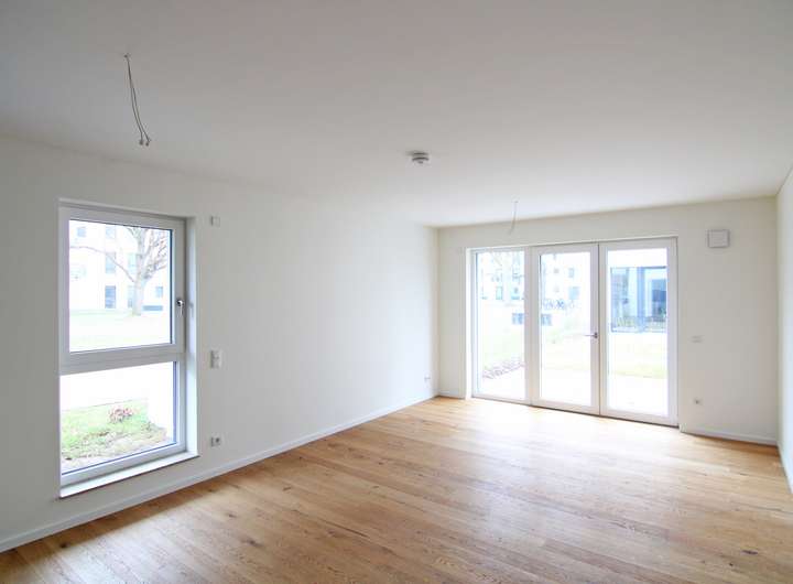Einziehen und sofort Wohlfühlen: diese elegante Wohnung liegt im hellen und auch sonnigen Erdgeschoss des Hauses - mit großer Sonnenterrasse! Die Wohnung zeigt einen gelungenen, modernen Grundriss. Eine Grundrissskizze (ohne Gewähr für Richtigkeit) haben wir diesem Exposé bereits beigefügt, damit Sie eine erste Orientierung haben. Die hochwertigen Ausstattungen überzeugen: das Echtholzparkett Eiche hell/Landhausdiele schafft ein wohnliches Ambiente, die gespachtelten Wände bringen Eleganz in die Wohnung. Sehr sehenswert ist die moderne Einbauküche, die bereits komplett ausgestattet ist und damit auch bereits über eine große Kühl-Gefrierkombination und einen Geschirrspüler verfügt. Das Duschbadezimmer (mit großer Dusche!) zeigt moderne Fliesungen und hübsche Accessoires. Die Wohnung ist sehr hell und auch sonnig. Von der geräumigen Terrasse haben Sie einen schönen Blick ins Grüne.