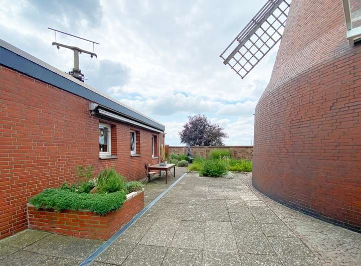 Ein Ort mit Charakter – diese 1891 erbaute Erdholländer Windmühle erzählt Geschichten längst vergangener Tage und bietet zugleich ein einzigartiges Zuhause. In den siebziger Jahren liebevoll saniert und neu aufgebaut, verbindet sie heute historischen Charme mit einem gewissen Wohnkomfort in Kombination mit Ihrem Gewerbe ob als Praxis, Kanzlei oder Werkstatt. Nur wenige Gehminuten vom Ortskern entfernt und dennoch fast in Alleinlage, genießt man hier Ruhe und Weite, ohne auf eine intakte Infrastruktur verzichten zu müssen. Auf dem ca. 3.600 qm großen Grundstück entfaltet sich ein Anwesen, das Platz und Freiraum für Ideen und Lebensentwürfe bietet. Die Mühle selbst dient heute als außergewöhnliches Wohnhaus mit viel Raum auf mehreren Ebenen. Fünf außergewöhnliche Zimmer, ein Büro, zwei Bäder und Gäste-WCs schaffen ein Wohngefühl, das Behaglichkeit mit Individualität verbindet. Ergänzt wird das Ensemble durch das ehemalige Maschinenhaus, ein Bungalow, der aktuell zu Wohnzwecken genutzt wird, mit eigener Küche, Bad, drei Wohn-/Schlafräumen sowie Werkstatt und Lager bietet er vielfältige Möglichkeiten – ob als Wohnung, als Praxis/Büro, Atelier oder Werkstatt. Wohnen und Arbeiten lassen sich hier auf wunderbare Weise vereinen. Der charmante Garten ist ein kleines Paradies für sich. Liebevoll gestaltete Rückzugsorte laden zum Verweilen ein, während eine Outdoor-Küche, ein "offenes Backhaus" für sommerlichen Feierspaß und ein Naturteich sowie ein Außenpool für Erfrischung und besondere Lebensqualität sorgen. Dieses Anwesen ist mehr als nur ein Zuhause für Ihre Familie. Es ist ein Ort voller Möglichkeiten, ein Stück lebendige Geschichte und ein Refugium für Menschen, die ihr Leben mit Individualität gestalten möchten.